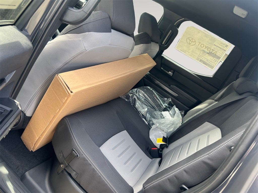 4WD, 3.583 Axle Ratio, 4-Wheel Disc Brakes, 6 Speakers, ABS brakes, Air Conditioning, All Weather Floor Liners (TMS), Alloy wheels, AM/FM radio: SiriusXM, Anti-whiplash front head restraints, Apple CarPlay/Android Auto, Auto High-beam Headlights, Auto-dimming Rear-View mirror, Automatic temperature control, Brake assist, Bumpers: body-color, Door Edge Guard (TMS), Driver door bin, Driver vanity mirror, Dual front impact airbags, Dual front side impact airbags, Electronic Stability Control, Emergency communication system: Safety Connect (1-year trial), Exterior Parking Camera Rear, Fabric Seat Trim, Four wheel independent suspension, Front anti-roll bar, Front Bucket Seats, Front Center Armrest, Front fog lights, Front reading lights, Fully automatic headlights, Heated door mirrors, Heated Seats, Illuminated entry, JBL Premium Audio, Knee airbag, Leather Shift Knob, Leather steering wheel, Low tire pressure warning, Mudguards (TMS), Occupant sensing airbag, Outside temperature display, Overhead airbag, Overhead console, Panic alarm, Passenger door bin, Passenger vanity mirror, Power door mirrors, Power steering, Power windows, Radio: 8 Toyota Audio Multimedia, Rear step bumper, Rear window defroster, Remote keyless entry, Security system, SofTex Seat Trim, Speed control, Speed-sensing steering, Split folding rear seat, Spray-On Bed Liner (TMS), Steering wheel mounted audio controls, Tachometer, Telescoping steering wheel, Tilt steering wheel, Traction control, Trip computer, Turn signal indicator mirrors, Variably intermittent wipers, and Wheels: 17 TRD Off-Road Alloy.