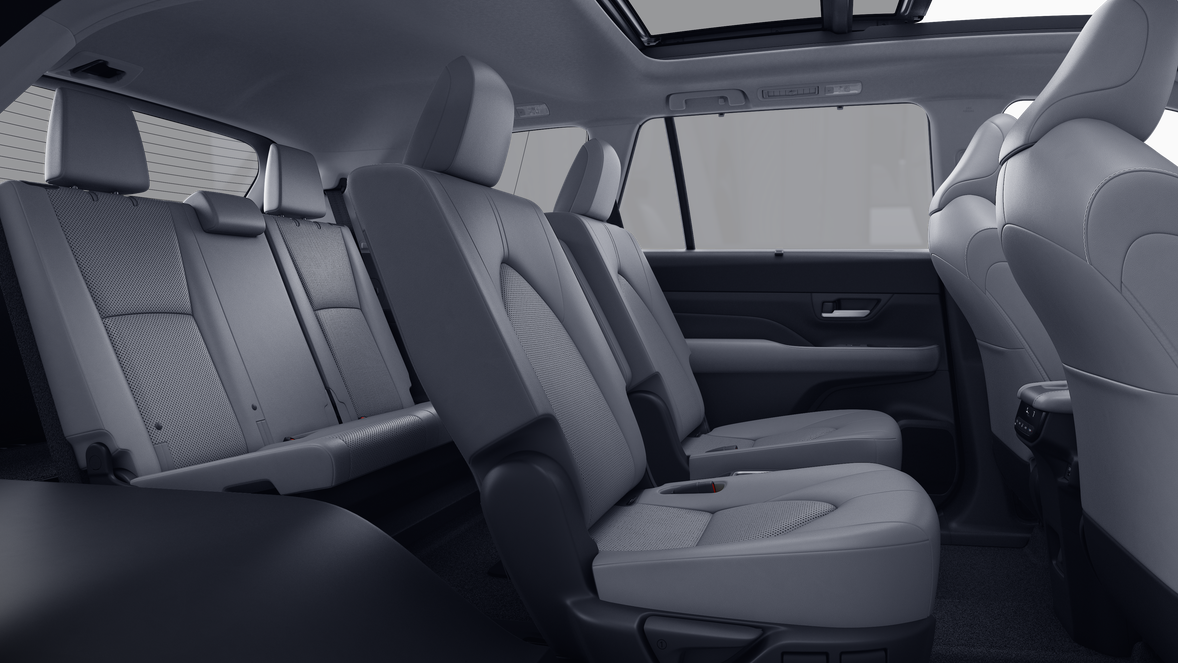 • 7-passenger seating with second-row fold-down captain's chairs and fold-down inboard armrests, adjustable headrests and two cup holders mounted on the floor; and 60/40 split, fold-down third-row seats with sliding headrests and recline function