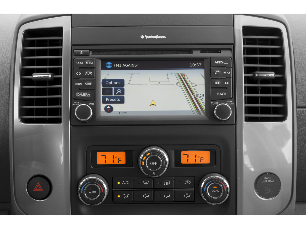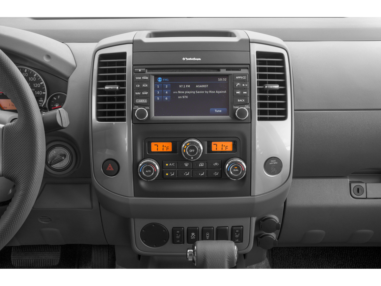 - Radio: Rockford Fosgate Premium Audio System -inc: 10 speakers including subwoofer, NissanConnect w/navigation and NissanConnect apps, 5.8" color touch-screen display, Nissan voice recognition for navigation audio, SiriusXM satellite radio, SiriusXM Traffic, SiriusXM Travel Link, Smartphone apps integration for iPhone and Android phones, USB connection port for iPod interface and other compatible devices, Bluetooth® hands-free phone system, streaming audio via Bluetooth® and hands-free text messaging assistant