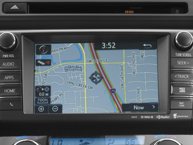 - Radio: Entune Premium Audio with Navigation -inc: AM/FM/MP3/WMA Playback, Entune App Suite, 6 speakers, HD Radio w/iTunes tagging, HD Traffic and Weather, SiriusXM Radio w/90-day trial, 7" touch-screen w/integrated back-up camera display, auxiliary audio jack, USB port w/iPod connectivity and control, vehicle information w/customizable settings, hands-free phone capability, phone book access and music streaming via Bluetooth® wireless technology