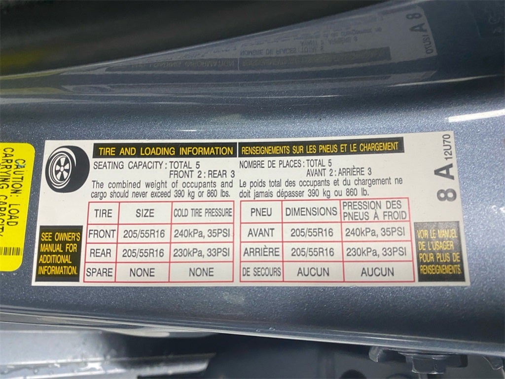 - Front Tire Size: P205/55HR16
